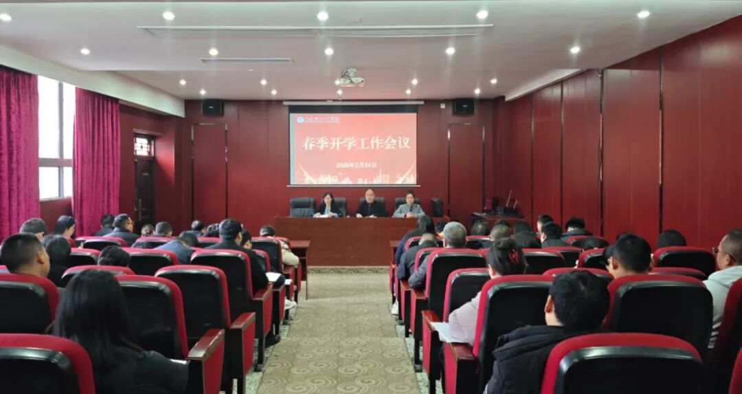 近日,学校在图书馆三楼会议室召开2026年春季开学工作会,正式拉开新学期工作序幕。学校领导班子成员、各处室负责人及全体教职工参加会议。