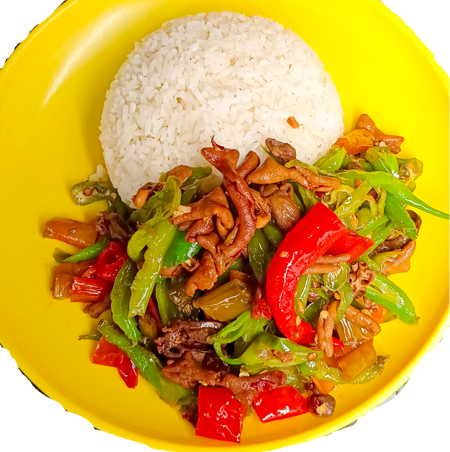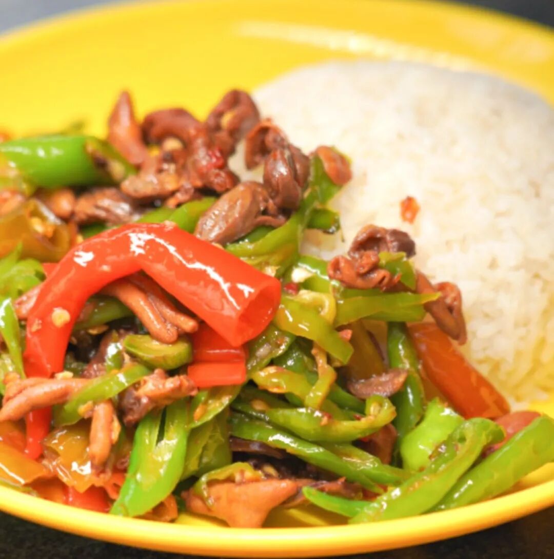 尖椒鸡杂盖饭